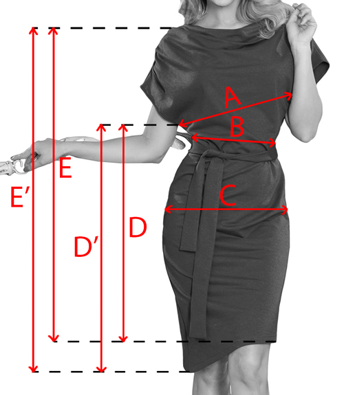 Délka od podpaží (D/D') 62/72 62/72 62/72 64/73